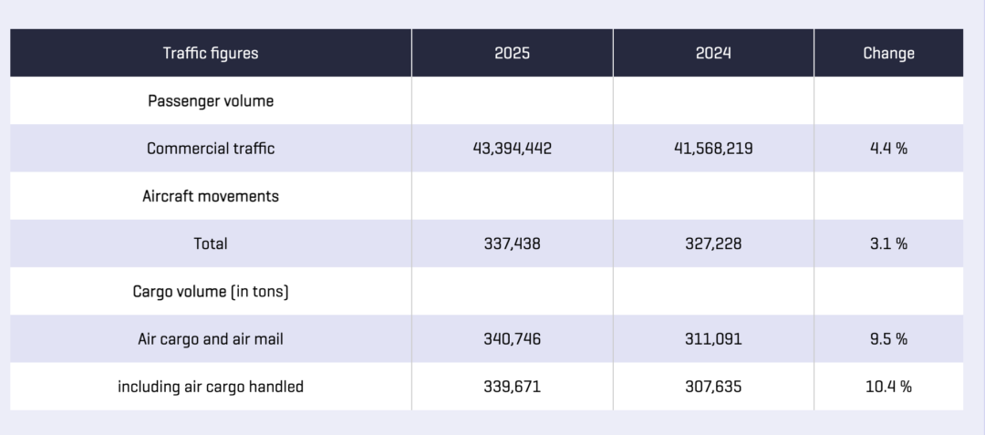The main driving forces behind this growth were once again European and intercontinental traffic. Traffic to European destinations and the Mediterranean region rose by around four percent. Long-haul traffic showed particularly strong performance, increasing by approximately nine percent compared to 2024.